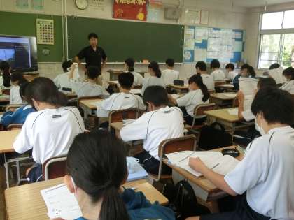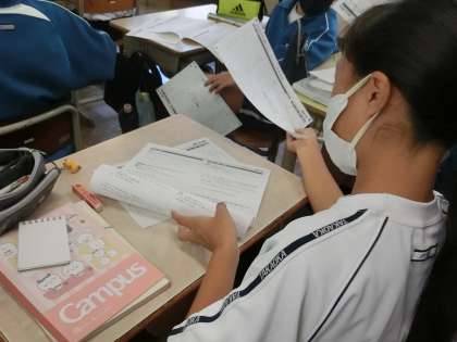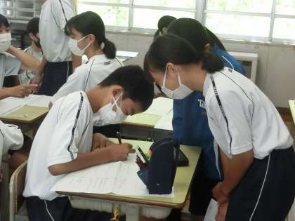定期テスト目前ということもあり、夏休み課題の復習プリントに仲間とともに取り組んでいました。