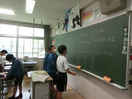 夏休み明け最初の授業から、いきなり単元の学習が行われていました。復習を兼ねた学習でしたが、夏休み明けでも良く手が挙がっています。