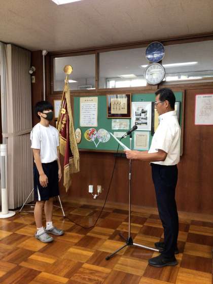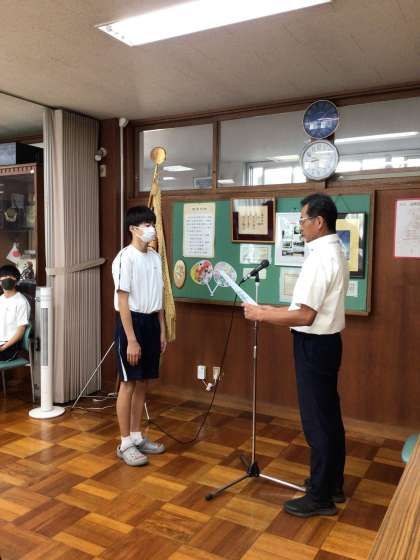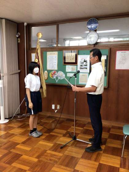 本日の1時間目に行われた夏休み明け全校集会での表彰伝達の様子です。