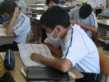 定期テストに向けての勉強に励んでいました。夏休み明けとは思えない集中力で取り組んでいました。