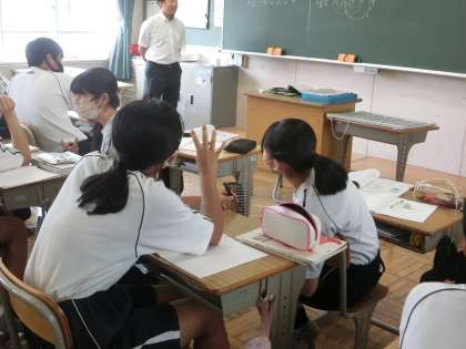 夏休み前に学習した内容の復習が行われていました。定期テストを控え、仲間同士での確認も積極的に行われていました。