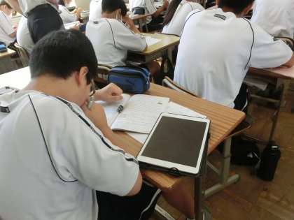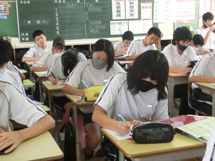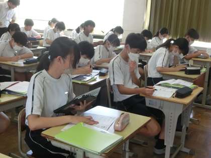 定期テストの向けて必死に勉強していました。また、生徒の頑張りを見守る教科担任の姿も印象的でした。