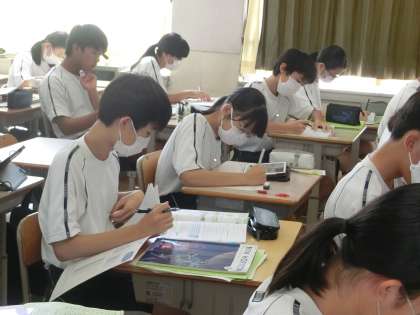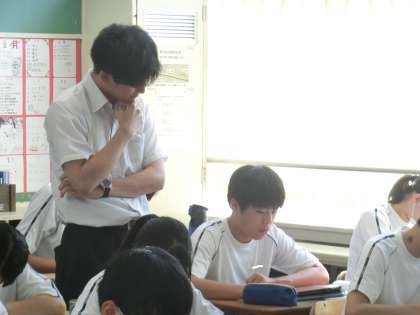 定期テストの向けて必死に勉強していました。また、生徒の頑張りを見守る教科担任の姿も印象的でした。