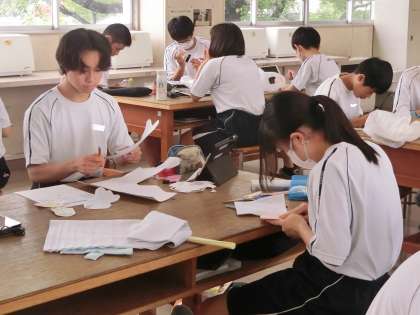 秋に行われる保育実習に向け、園児たちと遊ぶおもちゃ作りに取り組んでいました。夏休み中に考え、しっかりと材料を準備しての活動です。