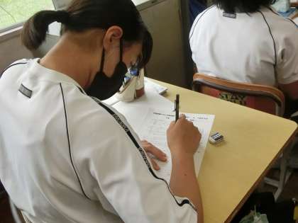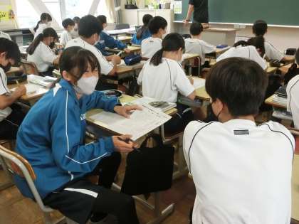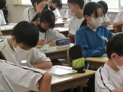 定期テストに向けての勉強に取り組んでいました。夏休みはもちろん、この連休で学習したことをプリントを使って確かめていきます。また、仲間に分かりやすく説明することで、知識の定着を確実なものにしていきます。