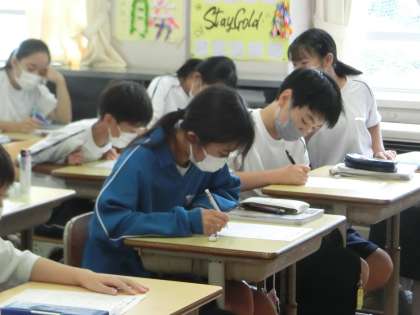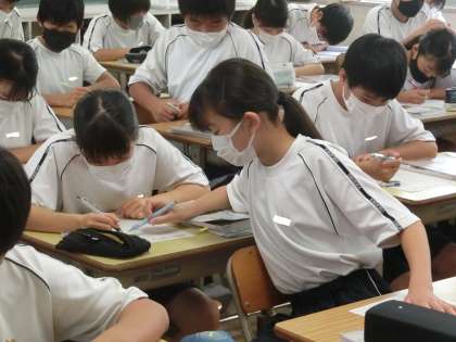 定期テストに向けての勉強に取り組んでいました。夏休みはもちろん、この連休で学習したことをプリントを使って確かめていきます。また、仲間に分かりやすく説明することで、知識の定着を確実なものにしていきます。