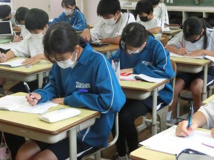 9/5 教育相談&テスト勉強 3 公開日 2023/09/05 更新日 2023/09/05 特別活動 昨日の1年3組の教育相談の様子です。 担任は教育相談で対応中でも、教室では生徒のみでしっかりとテスト勉強に取り組んでいました。