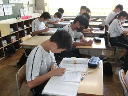 9/5 教育相談&テスト勉強 12 公開日 2023/09/05 更新日 2023/09/05 特別活動 昨日の3年4組の教育相談の様子です。 担任は教育相談で対応中でも、教室では生徒のみでしっかりとテスト勉強に取り組んでいました。