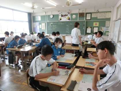 3年4組の社会・公民分野の授業の様子です。