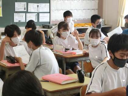 9/5 大事な第一印象 2 公開日 2023/09/05 更新日 2023/09/05 各学年から 2年3組の国語の授業の様子です。 職場体験学習に向けて、依頼電話のかけ方について学んでいました。「目の前に相手がいると思って話そう」をテーマに、個人で練習した電話のかけ方を仲間同士で確認していました。 この電話で第一印象が決まるとあって、慣れない言葉をスムーズに話せるように一生懸命練習していました。