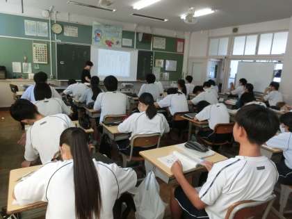 慣用句・ことわざ・故事成語について学んでいました。慣用句を使った文をグループで考える場面では、ユニークな解答も飛び出しました。
