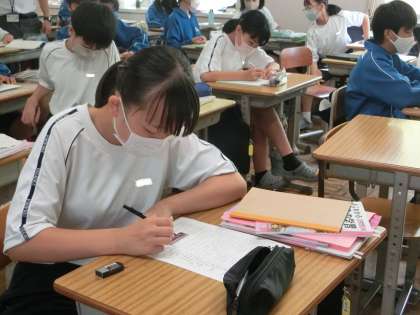 定期テストに向けての勉強に取り組んでいました。困ったときにはすぐに教科担任や仲間に声をかけ解決していきます。学校での勉強方法を工夫しているようです。