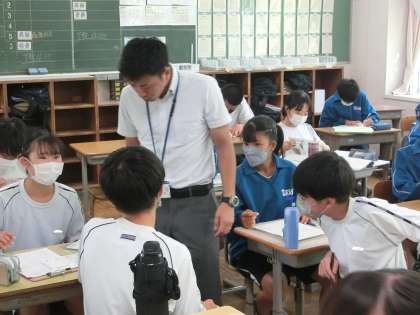 昨日の1年2組の社会の授業の様子です。