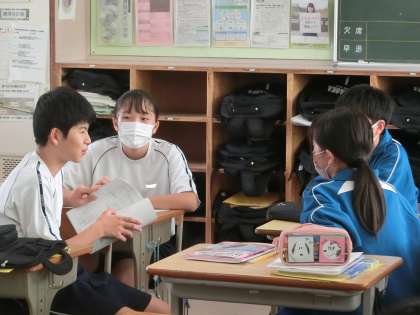 定期テストに向けての勉強に励んでました。仲間と問題を出し合ったりして、お互いが勉強していない部分を補っていきます。学校だからできる大切な勉強法の一つです。