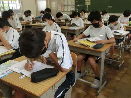 夏休み中の個人の努力と夏休み明けの仲間との頑張りの成果を発揮する時が来ました。どの教室を覗いても、朝から一生懸命に勉強に励んでいます。