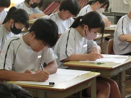9/6 第2回定期テスト(初日) 1 公開日 2023/09/06 更新日 2023/09/06 各学年から 定期テスト初日の問題に取り組む3年5組の様子です。 自身の進路実現に向けて、最大限の力を発揮してほしいと思います。