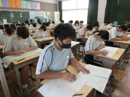9/6 第2回定期テスト(初日) 5 公開日 2023/09/06 更新日 2023/09/06 各学年から 定期テスト初日の問題に取り組む3年1組の様子です。 自身の進路実現に向けて、最大限の力を発揮してほしいと思います。