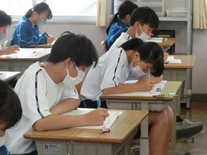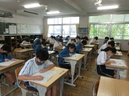 9/6 第2回定期テスト(初日) 6 公開日 2023/09/06 更新日 2023/09/06 各学年から 定期テスト初日の問題に取り組む1年1組の様子です。 中学校に入学して2回目となる定期テスト。初回の反省を生かし、夏休み中にも努力を重ねてきたはず。前回の自分を超える結果を手にすることができるよう祈っています。
