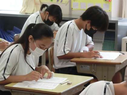 9/6 第2回定期テスト(初日) 8 公開日 2023/09/06 更新日 2023/09/06 各学年から 定期テスト初日の問題に取り組む1年3組の様子です。 中学校に入学して2回目となる定期テスト。初回の反省を生かし、夏休み中にも努力を重ねてきたはず。前回の自分を超える結果を手にすることができるよう祈っています。