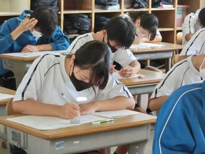 定期テスト初日の問題に取り組む2年5組の様子です。