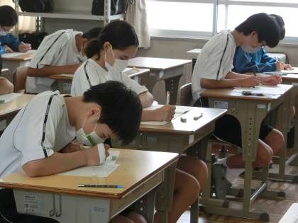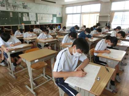 定期テスト初日の問題に取り組む2年2組の様子です。