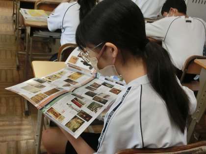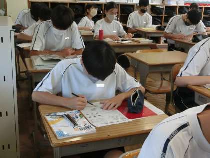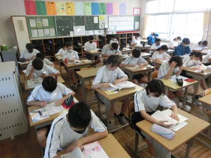 *写真は、2年2組の朝の勉強の様子です。