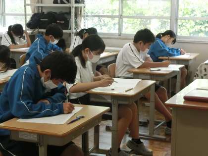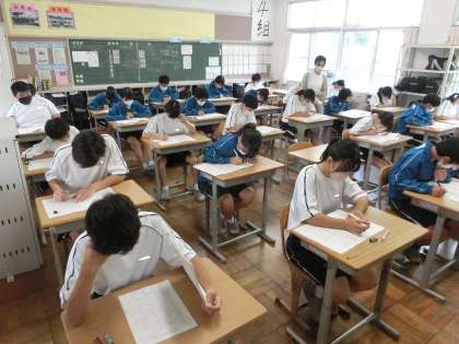 定期テスト2日目の問題に取り組む1年4組の様子です。