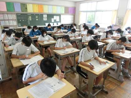 定期テスト2日目の問題に取り組む2年4組の様子です。