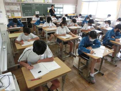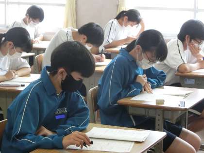 定期テスト2日目の問題に取り組む2年3組の様子です。
