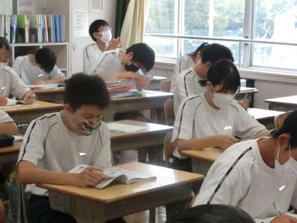 *写真は、3年1組の朝の勉強の様子です。