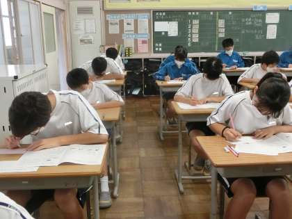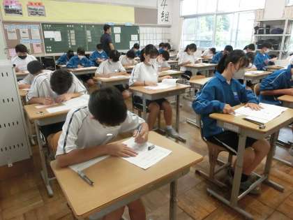 定期テスト最終日の問題に取り組む1年4組の様子です。