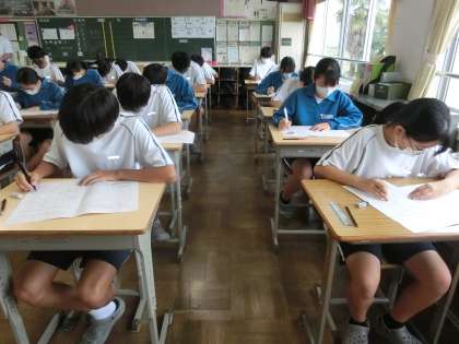 定期テスト最終日の問題に取り組む3年4組の様子です。