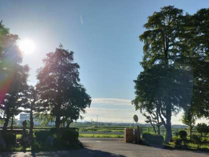台風13号も過ぎ去り、朝から気持ちのよい青空が広がっています。空気もさわやかで秋らしい朝の様子です。ただ、まだまだ日中の気温は上がりそうなので、熱中症には十分気をつけたいと思います。