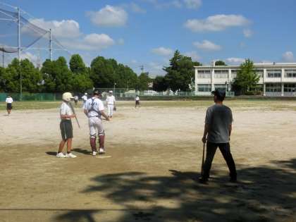 ゲーム形式のメニューで、打撃・守備ともにルールを確認しながらの練習でした。学年を問わず、レギュラー争いが始まっています。
