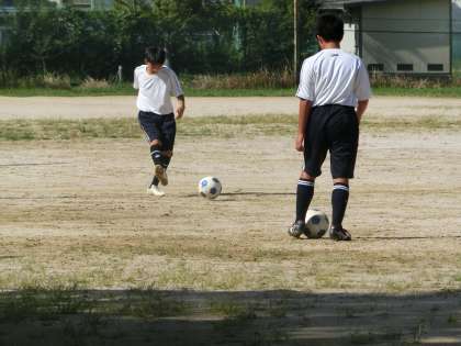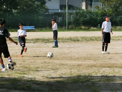 基礎メニューからしっかり取り組み、後半はゲームでの場面を想定したメニューで汗を流していました。最初はなかなかパスが通りませんでしたが、次第に息も合うようになり、ゲームでも使えるプレーを学んでいました。