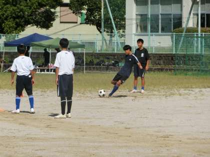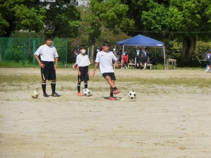 基礎メニューからしっかり取り組み、後半はゲームでの場面を想定したメニューで汗を流していました。最初はなかなかパスが通りませんでしたが、次第に息も合うようになり、ゲームでも使えるプレーを学んでいました。