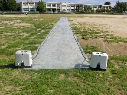 はっきりした意図は確認していませんが、運動場で猛威を振るう雑草の駆除のために実験されたものと思われます。