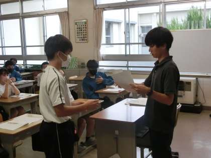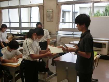 9/11 意識の高さが行動に表れる 2 公開日 2023/09/11 更新日 2023/09/11 各学年から 2年5組の理科の授業の様子です。 定期テストの返却が行われていました。感心したのはテストの受け取り方。教科担任に正対する、両手でもらう、お辞儀をするなど、返却されるテストを受け取る行為一つをとっても、テストに対しての意識の高さが違ってきます。