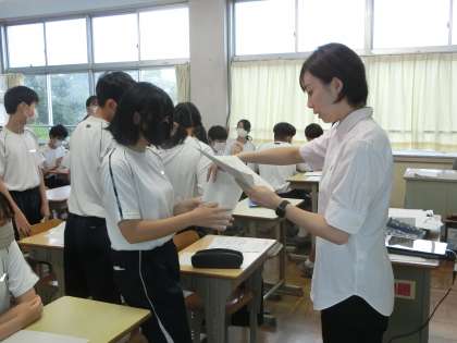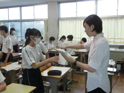 テスト返却前に解説が行われ、ようやくテストが手元に戻ってきます。自分がどんな解答を記したかを思い出したりすることは、知識の定着にもつながっています。また、仲間の考え方を共有することで、今後の学習のヒントにもなっています。