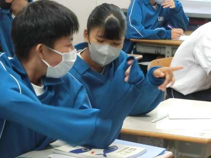 テストが返却され、分かったつもりの部分が明らかになりました。仲間と確認し合いながら、理解のあいまいな部分をはっきりさせていきます。