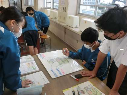 「家族が心地よく生活するにはどんな家がいい?」をテーマに、住まいについて学んでいました。仲間とともに理想の空間を作り出すためのアイデアを出しながら、普段何気なく生活している自宅の工夫にも関心をもったようでした。