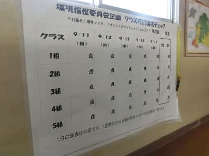 「クラス対抗環境チェック」と題して、環境福祉委員会が今週、取り組みを行います。学校生活をさらに快適なものにしていくためで、日頃の環境チェックを強化していきます。
