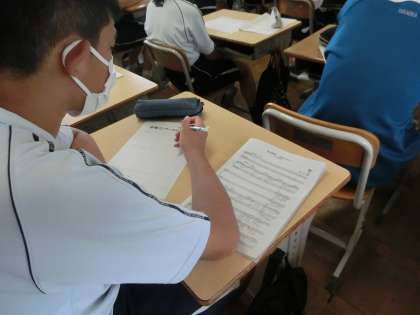 合唱コンの練習がいよいよ始まるということもあり、それに向けての準備が進められていました。拡大した楽譜の掲示物を作ったり、合唱コンを成功させるためにクラスで必要なことを考えたりしていました。