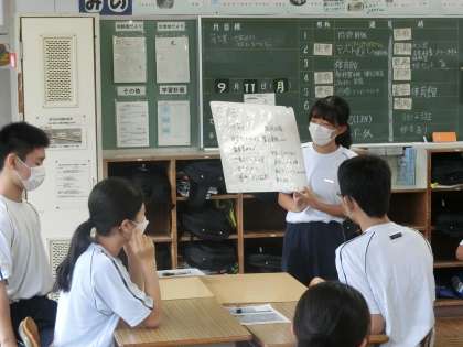 合唱コンクールに向けて、練習や普段の生活で意識していくべきことを考え、発表していました。