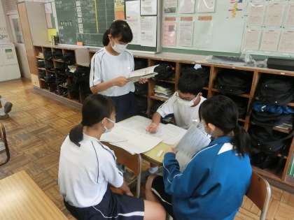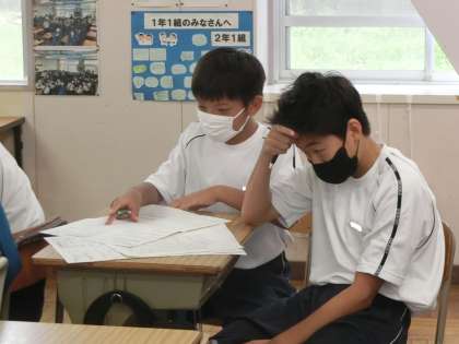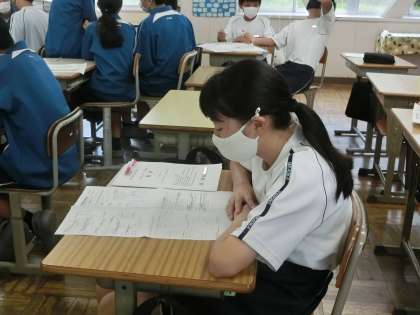定期テストが返却されましたが、教科担任からの細かな解説はありません。仲間同士で教え合い、分からないところ、さらに効果的な解き方などを探っていきます。もちろん教科担任も個別の質問には対応しています。