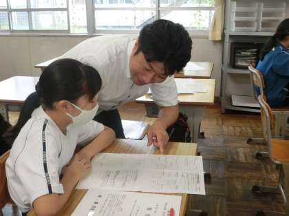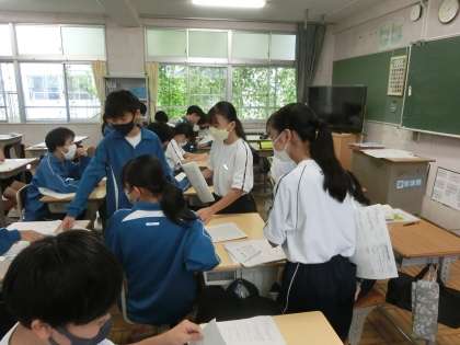 定期テストが返却されましたが、教科担任からの細かな解説はありません。仲間同士で教え合い、分からないところ、さらに効果的な解き方などを探っていきます。もちろん教科担任も個別の質問には対応しています。