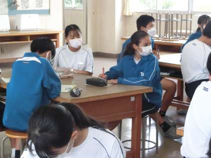 地域ごとに様式の違う家のつくりの映像を見ながら、「住まいのはたらきにはどのようなものがある?」をテーマに迫ろうとしていました。映像を見ただけでどの地域のものか、どんな特徴が隠されているかをイメージできる生徒もおり、興味をもちながら学習に向かう姿が多かったことに感心しました。
