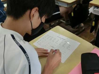 学習した英単語を活用したビンゴゲームに取り組んでいました。楽しみながら、英単語をしっかり覚えていきます。仲間とのかかわりも自然と生まれます。