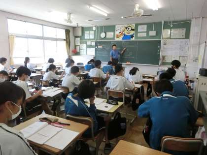 夏休み前の学習した1次関数の基本を復習したあと、発展問題に取り組んでいました。積み重ねの教科と言われる数学。日々のこまめな復習と習ったらなるべく早く理解することを繰り返していってほしいと思います。