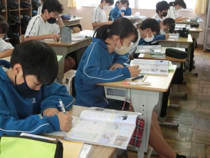 9/13 考える力を鍛える 3 公開日 2023/09/13 更新日 2023/09/13 各学年から 1年1組の社会・地理分野の授業の様子です。 「人々の暮らしは、なぜ場所によって異なるのだろう?」をテーマに、イヌイットを題材にした探求学習でした。あえてタブレットを使わず、教科書や資料集に掲載されている内容から推測していきます。これまで学習してきた内容や各自で興味をもって調べてみたことを思い出し、自分の考えをまとめていきます。
